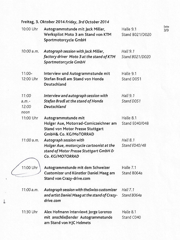 Autogrammstunde an der Intermot in Köln Mit unserem Tiger Bike schafften wir einmal mehr das Finale der AMD Weltmeisterschaft. Weiter wurden wir unterstützt durch die Intermot mit einem Stand, an dem wir für unsere "Fans" Autogramme unterzeichneten. Besten Dank an alle unsere Fans und die Intermot. |