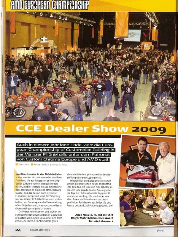 An der Custom Bike Show 2010 in Deutschland waren wir auch wieder mit unserer Handwerkskunst vertreten. Das Geschäft wurde in 4 Magazinen aufgeführt. Vielen Dank an den Huber Verlag Deutschland! |